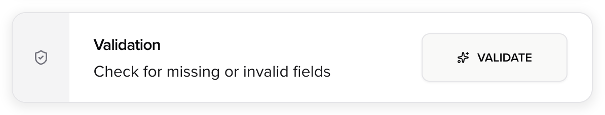This action performs default validation checks and executes the Validation Plugin if it has been implemented.